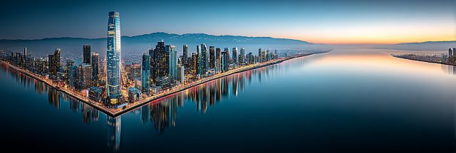 As the last, lingering light of the Fourth of July sunset washes over San Francisco, an extraordinary canvas emerges, aglow with a celebration's brilliance, aptly named "Golden Glow." The photograph presents an expansive view of the iconic skyline, where architectural grandeur meets the calm, reflective waters of the Bay. In the foreground, the Transamerica Pyramid and Salesforce Tower stand prominently, lit not only by the natural residue of dusk but also by the vivacity of the holiday's fireworks - though unseen, their presence is implied in the city's electrified aura. The color palette skillfully transitions from warm tones of amber and gold in the sky to cooler, tranquil blues of the water below, creating a harmonious blend that epitomizes the serenity and excitement of the moment. The city, captured from this rare vantage point, offers a symphony of shapes and reflections, constructing a visual narrative that is both majestic and intimately familiar. The use of high-definition textures and master composition elevates the scene, transporting viewers from mere observers to participants in the city’s festive evening. This moment suspended in time, encapsulated in high-definition quality, invites wonder and contemplation about the intertwined stories of a city alive with light and color.