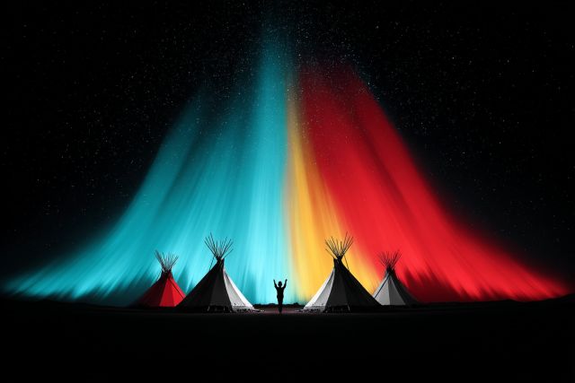 Enchanted Colors of the Aurora Borealis Over Traditional Teepees