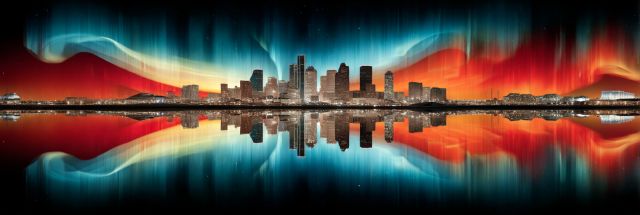 "Cosmic Blaze Over Houston: An Aurora-Inspired Skyline Transformation"