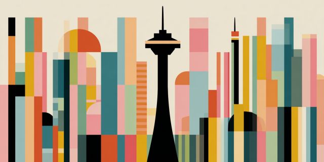 Enigmatic Urban Tapestry: Abstract Skyline of Seattle on Canvas