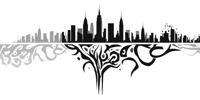 Immerse yourself in the intricate dance of shadows and light depicted in this mesmerizing artwork, where imagination meets urbanity at a serene juncture. The artwork elegantly fuses the undulating patterns of a recursive fractal tree with a minimalist New York City skyline in the background. Each skyscraper, iconic and poised, suggests a far-off dream seen through a mist, where the familiar contours of landmarks like the Empire State and Chrysler buildings emerge faintly. The foreground captivates with a complex tree structure, its branches swirling into whimsical loops and curls, rendered in stark black against a pristine white backdrop. This juxtaposition of organic forms with man-made structures creates a surreal visual narrative, inviting viewers to interpret the interplay of nature and urban progress. The monochrome palette enhances the ethereal quality of the scene, making the art not just a viewing experience but an entry into a world of abstract beauty and contemplation. This artwork transcends the ordinary, offering a lens through which the viewer might explore themes of growth, resilience, and the persistent pulse of urban life intertwined with nature's unpredictable beauty.