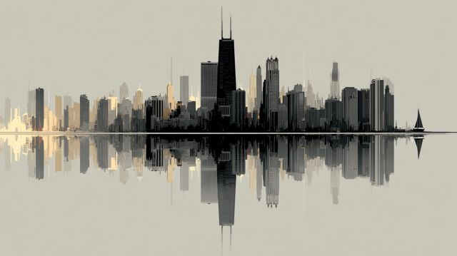 Silhouetted Dreams: Chicago Skyline in Strokes of Minimalism