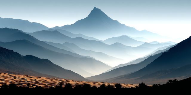 Sunrise Serenity: A Minimalist Mountain Landscape in Earth Tones