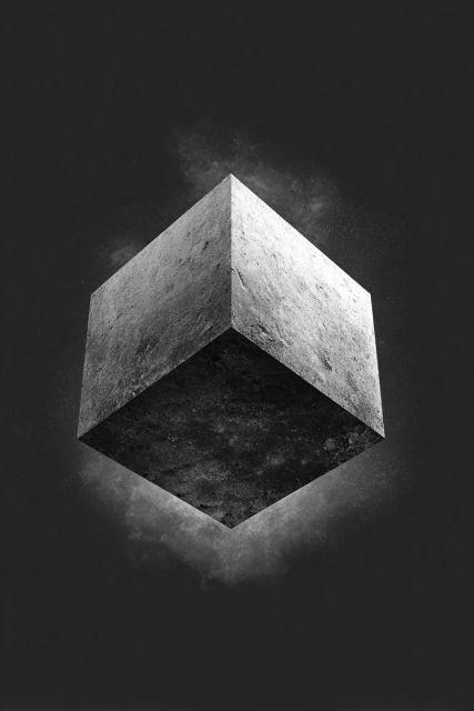 Amid the vast quietude of monochrome whispers, the artwork "Ethereal Void" captures a mesmerizing interplay of light and shadow. A concrete form, an elusive yet poignant geometric shape, floats enigmatically against a deep, dark backdrop. Its surfaces are rugged, each angle telling stories of silent endurance, giving viewers an impression it was chiseled from the fabric of space-time itself. The stark contrast between the harsh materiality of the object and the soft, engulfing darkness around it is evocative of life's frequent juxtapositions - solidity amidst the ephemeral, light against the consuming void. As your gaze lingers, the piece seems to pulse with its own life, each side capturing and reflecting thoughts and emotions differently, depending on how light is thrown against its planes. Such minimalistic yet powerful imagery invites introspection and philosophical musings about existence and isolation in the universe. "Ethereal Void" does not merely occupy physical space; it commands psychological and emotional territory, urging a dialogue about the boundaries of perception and the essence of seeing and being seen. This art is an exploration, a visual sonnet of simplicity and complexity intertwined, where every viewer might find a different whisper of the universe speaking directly to them.