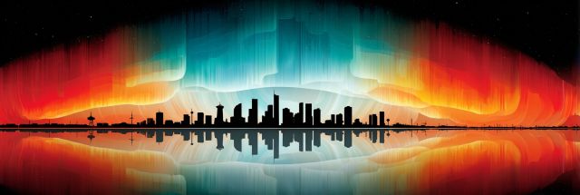Fire and Ice Over Houston: A Dramatic Aurora Skyline Canvas