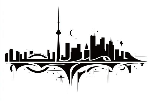 A Monochrome Masterpiece: Toronto's Skyline in Detailed Silhouette