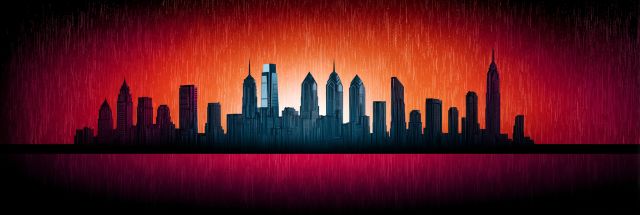 Fiery Red Silhouette of Philadelphia Skyline: A Modern Artistic Tribute
