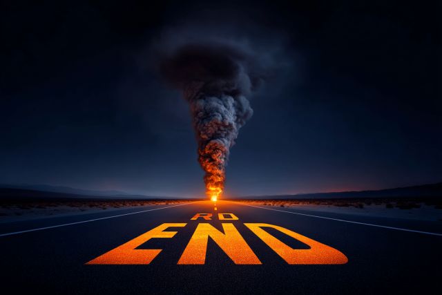 "End of the Road: Fiery Path Amidst Twilight's Embrace"