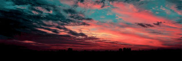 "Crimson and Cobalt Dreams: Twilight Over an Urban Horizon"