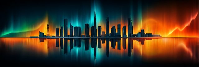Imagine the electrifying dance of the Aurora Borealis cascading over the iconic skyline of Los Angeles, blending natural wonder with urban grandeur in an explosion of color that paints the heavens and the earth alike. This artwork reimagines a rare celestial phenomenon with a palette overflowing with vibrant blues and fiery oranges reflecting both on the lofty buildings and the water’s mirror surface below. Each building, distinct yet harmoniously integrated into the bold silhouette of the city, participates in this brilliant display of lights reminiscent of the famed Burning Man’s vivid environments. Beyond providing a visually stunning scene, this canvas stirs the imagination and invites viewers to lose themselves in a symphony of colors that suggest a mystical gateway between day and night, reality and dreams. This piece encapsulates not just the beauty of Los Angeles, but the magical possibilities when nature's wildest phenomena meet human creativity.