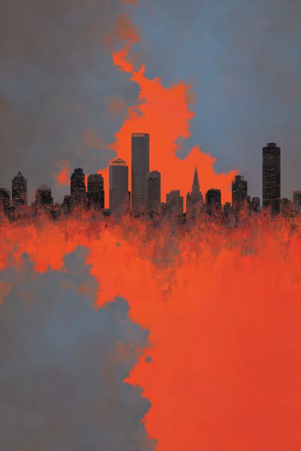 Blazing Horizons: Abstract Boston Skyline Immersed in Terracotta Dreams