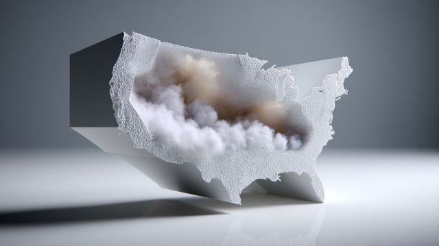 Unveil the vibrant pulse of America captured in this mesmerizing art print that dances between abstraction and clarity. Crafted meticulously, the piece features the silhouette of the United States rendered on a stark white canvas. Within its contours, a dynamic interplay of textures suggests the stirring beats and rhythmic vibrations of diverse musical genres flourishing across the nation. Particularly poignant are the zones in Southern California, Michigan, Pennsylvania, Washington DC, and Florida, where the visual intensity amplifies, symbolizing areas with rich musical heritage or burgeoning music scenes. This artwork not only maps a country but also an acoustic journey; swirling clouds within the map's form seem to burst forward, implying sound breaking free from within the borders. As the viewer's eye travels across this varied landscape, one experiences a sense of ephemeral beauty, with each state articulated not just through shape but through an abstract, almost dreamlike infusion of tones and mists, inviting interpretations as boundless as music itself.