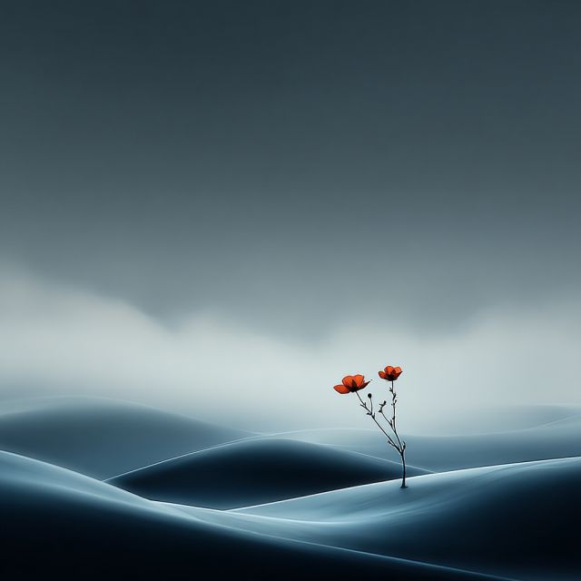 A Serene Vision: Solitary Flowers Amidst Midnight Blue Dunes