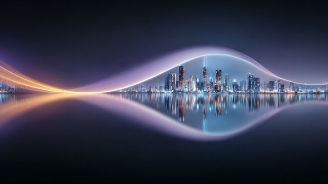 Beneath a celestial vault painted with soft luminescence, the city of San Jose emerges as a futuristic odyssey, transfigured by digital wizardry into an urban realm at once familiar and stunningly novel. A vast wave of neon hues, broad strokes of violet and serene blues, encapsulates an ethereal skyline. Here, sparsely distributed skyscrapers pierce through the digital fog, creating an elegant contrast against the ambient void. This sublime synthesis of the physical and the imagined invites viewers into a world where architecture dances fluidly with light. The reflections on the calm, glassy waters double the allure, enhancing the city’s spectral quality. Streams of cyber particles weave through these towers, marking the air with paths of shimmering light that suggest both the ceaseless pulse of urban life and the serene flow of time. Positioned from a cinematic wide-angle, the perspective grants the composition a profound depth, stretching beyond the horizon into the infinity of human ingenuity and technological possibilities.