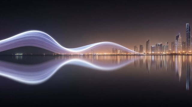 Ethereal Light Waves Over Abu Dhabi’s Futuristic Skyline