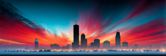 As dusk embraces the horizon, the skyline of Indianapolis transforms into an extraordinary canvas splashed with flamboyant colors reminiscent of the Burning Man festival's jellyfish tents. This art print masterfully marries the serene and consistent architecture of the city with a wildly vibrant and dynamic sky. Against a backdrop of smoldering hues—ranging from the fiery oranges and reds to the calming purples—the iconic buildings stand stoic and proud. The artwork manages to capture not just the visual majesty of the skyline, but also the pulsating energy that the city embodies after sundown. The effervescent sky seems to dance in joyous celebration of the city’s cultural dynamism and progressive spirit. This art piece is a tribute to the inevitability of nightfall, encapsulating the transformative power of light and shadow across the city’s pantheon of architectural marvels. Far from a static cityscape, this portrayal incites a narrative of rejuvenation and relentless beauty, making it a captivating centerpiece for any space.