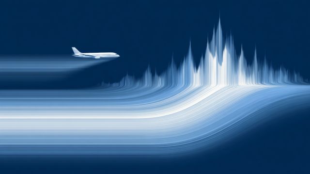 Soaring Over Dreamy Peaks: An Airplane's Skyline Fantasy in Blue