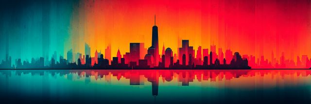 Fiery Spectrum Over Manhattan: New York Cityscape in Vibrant Hues