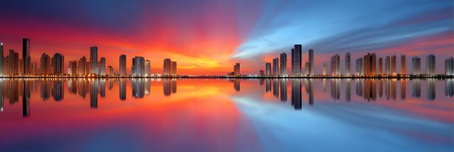 Vibrant Miami Skyline: A Celebration of Light and Reflection