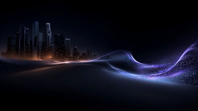 Ethereal Twilight: Los Angeles Skyline Amidst Digital Waves