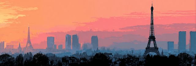 Enigmatic Paris Skyline Drenched in Pastel Sunset Hues