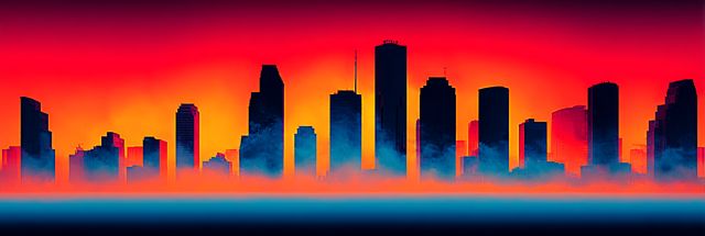 *** About Houston Skyline: Houston, the fourth largest city in the United States, is renowned for its impressive skyline that features a mix of neoclassical and postmodern structures. It includes notable buildings like the JPMorgan Chase Tower and the Wells Fargo Plaza, which stand as monuments to the city’s economic vigor and architectural innovation. This image of Houston’s skyline stylized in the spirit of the Burning Man festival encapsulates both the city's dynamic growth and its capacity for artistic expression, creating a captivating juxtaposition between everyday reality and fantastical interpretation.