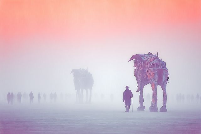 Enigmatic Dawn at Burning Man: Echoes of Surreal Majesty