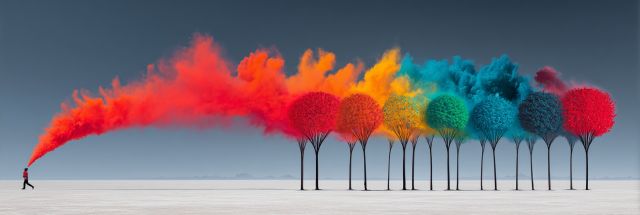 Ephemeral Vibrance: Colorful Trees Dancing in a Surreal Vista