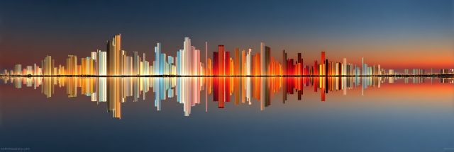 **Keywords:** Houston skyline, Independence Day, Fourth of July, urban photography, cityscape, evening glow, landscape reflection, modern art print, celebration theme, architectural beauty, waterfront views, vibrant colors.