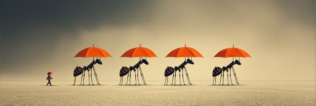 *** About Surreal Art: Surreal art ventures beyond the boundaries of the real world, employing unexpected juxtapositions and dreamlike scenes that tap into the subconscious mind. Originating in the early 20th century, this movement seeks to release the creative potential of the unconscious through bizarre, often illogical imagery. Artworks in this style provoke thought, drawing viewers into a deeper contemplation of their realities and the workings of their minds. This piece, featuring ants with umbrellas, is a quintessential example of surreal art, combining familiar objects in unfamiliar contexts to evoke wonder and introspection.