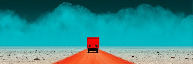 Envision a vast expanse where the sky blooms with a crisp, turquoise hue, a stark contrast to the earthen plain stretching endlessly ahead. At the heart of this dreamscape, a striking red road unfurls its fiery path towards the horizon, beckoning to those with a wanderlust spirit. A solitary, enigmatic red truck drives along this road, a vibrant speck against the monochrome ground, evoking a narrative of adventure, mystery, and exploration. The juxtaposition of surreal colors and elements in the composition invites viewers to ponder the unknown destinations and stories that lie ahead. The artwork beautifully captures the allure of solitude and the indomitable urge to explore, making it a mesmerizing portal to other worlds. This piece, reminiscent of the conceptual escapes found in metaphysical art, uses color and minimalism not just to depict a scene but to evoke emotion and thought, challenging the observer to break free from the routine and dive into the depths of their imagination. It resonates with the quiet moments of reflection during solitary road trips across unknown landscapes, where thoughts roam as freely as the wheels on the tar. The canvas is more than a simple depiction; it is an invitation to lose oneself in the layers of meaning and beauty, to travel not just across the land but into the realms of personal introspection.