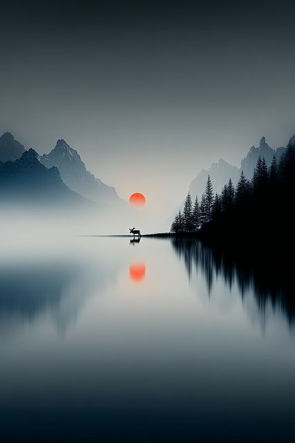 Serene Sunset Over Misty Lake: A Canvas of Nature's Splendor