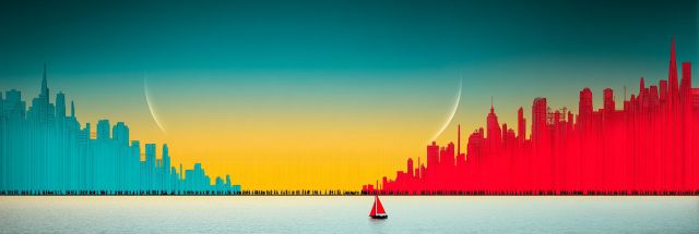 As the sun whispers its final adieu below the horizon, a captivating scene unfolds along the San Francisco skyline. A vivid crescendo of colors bathes the cityscape, transitioning seamlessly from azure calmness to passionate vermilion, encapsulating a moment both surreal and magnificently serene. A lone sailboat glides along the waters, embraced by this grand spectacle of twilight hues that transform ordinary city architecture into a vibrant canvas of otherworldly beauty. Above, the night sky timidly begins its reign, marked by twin crescent moons that cast a gentle, silvery glow across the skyscraper peaks. This image not only captures the iconic silhouette of San Francisco but dresses it in an ambiance akin to that of a fantastical painting. The artistic styling alludes to a convergence of reality and fantasy where urban tactility meets the ethereal, prompting viewers to ponder the fluid boundaries between dream and waking life. This symphony of color and form celebrates the dynamic spirit of San Francisco while inviting its audience to lose themselves in an immersive visual narrative.