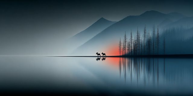 *** About [Subject]: Moose, the giants of the northern wilderness, are not merely animals; they are symbols of resilience and calm. Powerful yet peaceful, these creatures often represent the spirit of the forests they roam. In folklore and art, moose are depicted as stoic and solitary figures, embodying the wilderness itself. As part of this artwork, the moose at the edge of the lake enhances the overall tranquil and majestic theme, providing a focal point that draws the viewer deeper into the natural scape.