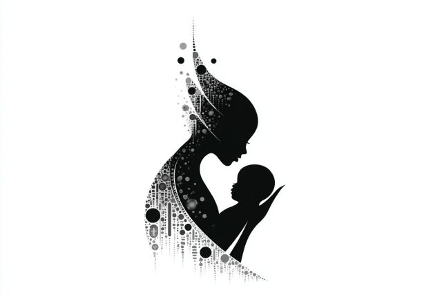 Mother's Embrace: A Silhouette in Monochrome with Algorithmic Elements