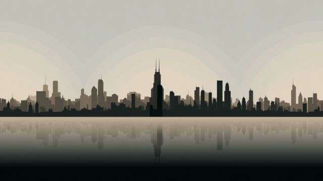 Enigmatic Silhouettes of Chicago Skyline: A Minimalist Panorama