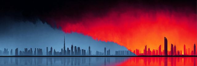 Fiery Horizons: A Vivid Rendition of a Hellish Urban Skyline