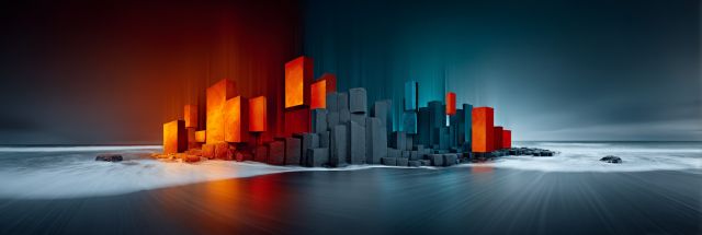Envision the majestic natural wonder of the Giant’s Causeway, traditionally celebrated for its raw, geological charm, transformed into a fantastical panorama through an artistic infusion reminiscent of the vibrant Burning Man festival. In this exceptional artwork, the iconic basalt columns rise starkly against a softened horizon, their rigid, natural forms reimagined into a geometric dance of color and light. Each prism-like facet casts a luminous glow in a spectrum that shifts from fiery red to deep, tranquil blue, invoking a sense of dynamic contrast and emotional depth. The portrayal not only enhances the mythical charm attributed to this Northern Irish landmark but also catapults it into a realm of whimsical modernity. Light plays across the surfaces, mimicking the natural interplay of shadow and brightness one might experience along the coastline at sunrise or sunset, yet drenched in supernatural tones. This canvas transforms the familiar into the extraordinary, inviting viewers to lose themselves in an immersive experience that bridges the natural world with the boundless territories of human imagination.