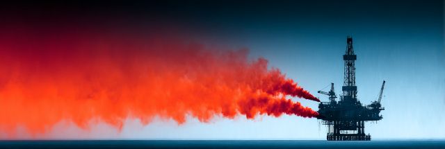 Fiery Horizon: An Oil Rig Emblazoned Against a Bleak Seascape