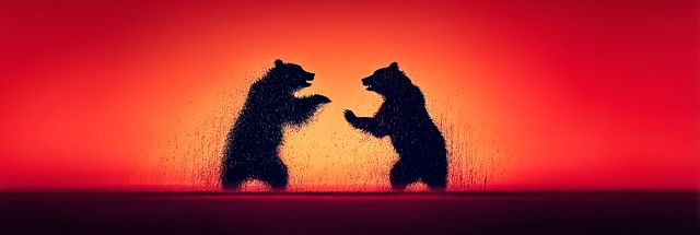 "Epic Dance of Shadows: A Silhouetted Bear Duel at Dusk"