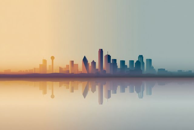 As daylight delicately breaks, the Dallas skyline emerges like a dream painted in soft hues and minimalistic elegance. This artistic interpretation captures the essence of the city as a serene silhouette against an ethereal backdrop, mirroring itself in the tranquil waters below. The composition, focused on clean lines and smooth gradient shadows, evokes a sense of calmness and refinement. Each building, from the iconic Reunion Tower to the sharp edges of modern skyscrapers, is rendered in subtle tones that suggest a reverie suspended in time. This artwork not only showcases the architectural diversity and dynamic growth of Dallas but also transforms familiar urban contours into an abstract landscape of peace and beauty. As viewers, we are invited to pause and reflect—a city not just bustling with energy but also capable of quiet introspection. Immerse yourself in this visual journey where light plays with shadow, and reality merges with artistic vision, creating a stunning reminder of Dallas’s unique skyline.