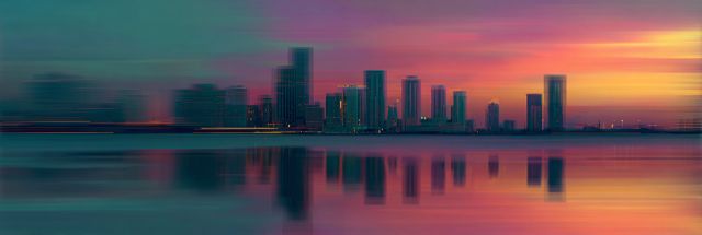 *** About Miami Skyline: Miami, known for its vibrant culture and bustling nightlife, also harbors a lesser-known persona captured beautifully in this artwork—the tranquil, almost poetic side seen during dusk. Home to one of the most iconic skylines in the world, Miami's architecture ranges from Art Deco to modern glass skyscrapers, all standing as testament to the city's dynamic growth and architectural innovation. This rendering of the Miami skyline highlights its silhouette in a symphony of blurred colors, emphasizing the peaceful moments that can still be found amidst the urban energy.