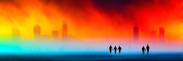 Under a sky alive with a kaleidoscope of fiery oranges and calming blues, the iconic skyline of Buffalo transforms into a surreal vista. This striking canvas captures a moment of vibrant contrast, where the stark outlines of the city’s architecture are juxtaposed against the soft glow of a dreamlike horizon. This artwork pulls viewers into a fantasy world reminiscent of the avant-garde spirit of the Burning Man Festival. Figures, mere silhouettes against the engulfing blaze, traverse this imaginary scape, adding a human element to the mystical scene. The artwork encapsulates a feeling of movement and whimsy, as it plays with light, shadow, and color to portray Buffalo not just as a city, but as a canvas for vast emotional and artistic expression. The serene blues cool the fieriness of the oranges and reds, crafting a visual experience that speaks to the soul’s yearning for both excitement and tranquility. This piece is more than just a depiction of a city; it is an invitation to delve into the depths of imagination and emotion, a reminder of the evanescent moments that blaze like fire and then fade into the coolness of night.