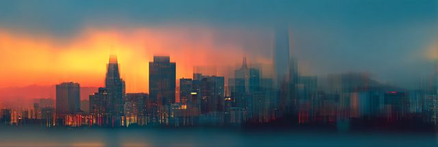 As the day bows gracefully into the arms of night, the skyline of San Jose emerges like a symphony painted in pastels. The city's outlines blur into a dreamlike tableau, masterfully captured on canvas. Skyscrapers stretch into the sky, their sharp angles softened by the embracing dusk, mirrored in the tranquil waters below, suggesting infinite depths. This image invites the viewer to imagine the gentle hum of the city's heartbeat, pulsing quietly under the fiery caress of the fading sun. The spectrum of colors - from burning oranges to deep, mysterious blues - dance across the canvas, their interaction creating a dynamic visual experience that is both serene and invigorating. As the natural light diminishes, artificial lights begin to flicker, casting golden specks into the coming twilight, hinting at the unseen life stirring within the glass-clad towers. This artwork is not just a visual journey but a sensory experience, beckoning to those who seek tranquility in urban landscapes.