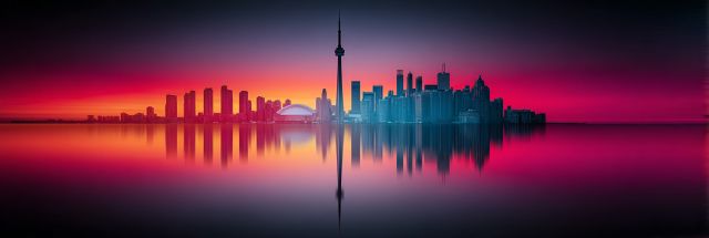 *** About Toronto: Toronto, Canada's largest city, is celebrated for its diversity, vibrant culture, and iconic skyline dominated by the CN Tower. As a hub of arts and innovation, Toronto frequently inspires artists and photographers who seek to capture its dynamic spirit and architectural beauty. This interpretation of its skyline at twilight showcases the city's dual nature: a bustling metropolis that still makes space for moments of unexpected magic and tranquillity.