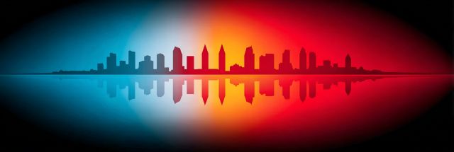 Vivid Twilight Reflections: A San Diego Skyline Inspired by Burning Man