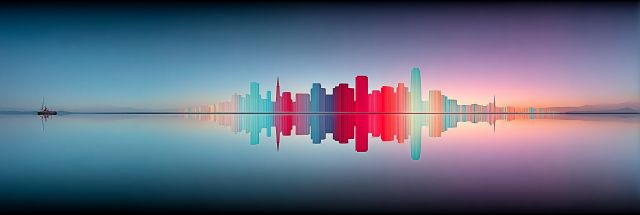 As the sun dips below the horizon, a breathtaking array of colors dance across the skyline of San Francisco, each building outlined in hues of pink, blue, and purple against the calm expanse of the sky. This artistic composition captures the essence of the city as it transitions from day to night, enveloped by a golden glow of fading daylight. In the lower half of the canvas, the still waters mirror this spectral display with flawless clarity, creating a symmetrical vision that doubles the impact of the city's iconic architecture. A solitary sailboat drifts languidly on the glassy water, its presence adding a touch of serene solitude to the bustling cityscape. This juxtaposition of vibrant urban life and tranquil natural elements crafts a narrative of a city that thrives in contrast and celebrates its dynamic environment. The skillful use of natural light enhances the high-definition textures of the buildings, highlighting intricate details that might otherwise go unnoticed. The result is not just an image, but a portal to a moment frozen in time, inviting viewers to linger over the serene beauty and imaginative power of an urban sunset transformed into a canvas of dreams.
