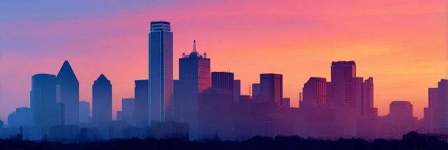 Enigmatic Dawn Hues Over Dallas: An Artistic Skyline Silhouette