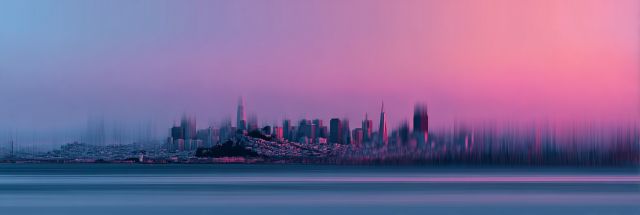 The San Francisco skyline emerges like a mirage, painted in soft strokes of pastels and stretches of pinks and purples that melt into a tranquil azure backdrop. This canvas art captures a moment of serene beauty, where the bustling city is transformed into a gentle watercolor dream. The iconic skyscrapers, normally sharp and rigid, blur into a fluid dance of shapes, teasing the observer's imagination. The artwork evokes a sense of calm and wonder, as the daylight fades and the city lights prepare to twinkle. The deep blues and vibrant pinks suggest early evening, a time when the city shifts from busy daytime routines to the mysterious potential of the night.