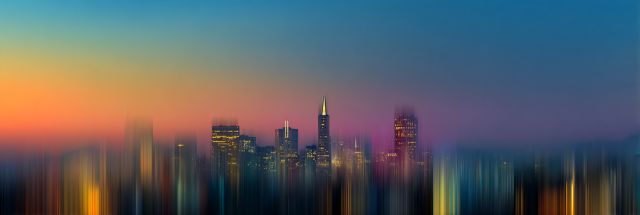 As dawn stretches its tendrils across the horizon, the San Francisco skyline emerges, draped in ethereal pastels that blur into a mesmerizing gradient of matte colors. This artwork captures the iconic cityscape as it transitions from the mystical night into the promise of a new day. Buildings, distinct yet softened at their edges, stretch upward, striving to pierce the unfolding day, their features softened and abstracted into dreamlike silhouettes. The tallest spires catch the first light, reflecting hues of deep amethyst transitioning into sapphire and warm, welcoming golds and soft corals. This blend of warm and cool tones suggests a city that is vibrant and dynamic, yet also tranquil and contemplative. The blurred lines and merging colors evoke a sense of calm, making it more than just a city portrait; it's a moment of fleeting beauty, captured forever in time. This piece invites the viewer to pause and reflect, offering a window into the serene moments that begin each day in San Francisco, even as the city remains a bustling hub of activity.